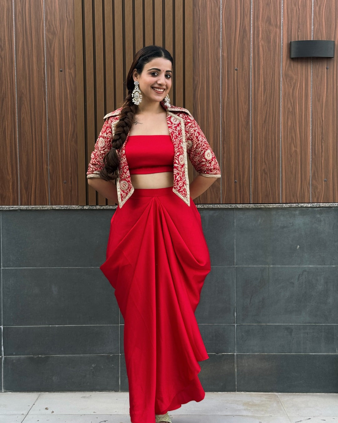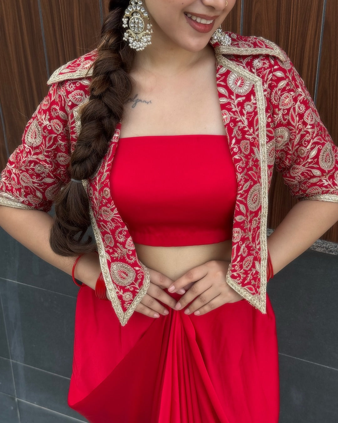 Fabric: Embroidered Georgette (jacket) & Satin (dhoti)