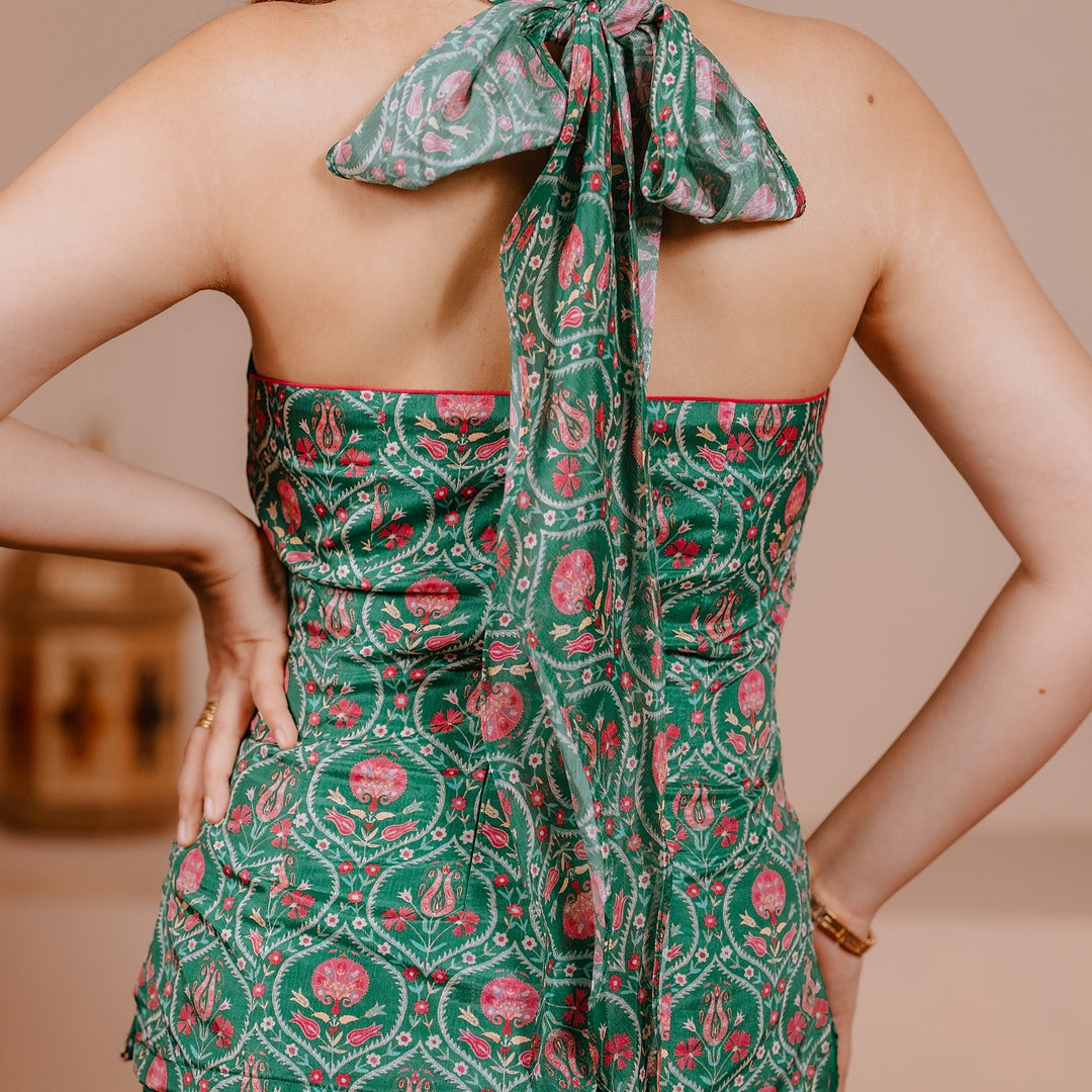 A chic blend of elegance and comfort in rich green hues, perfect for festive and modern occasions.